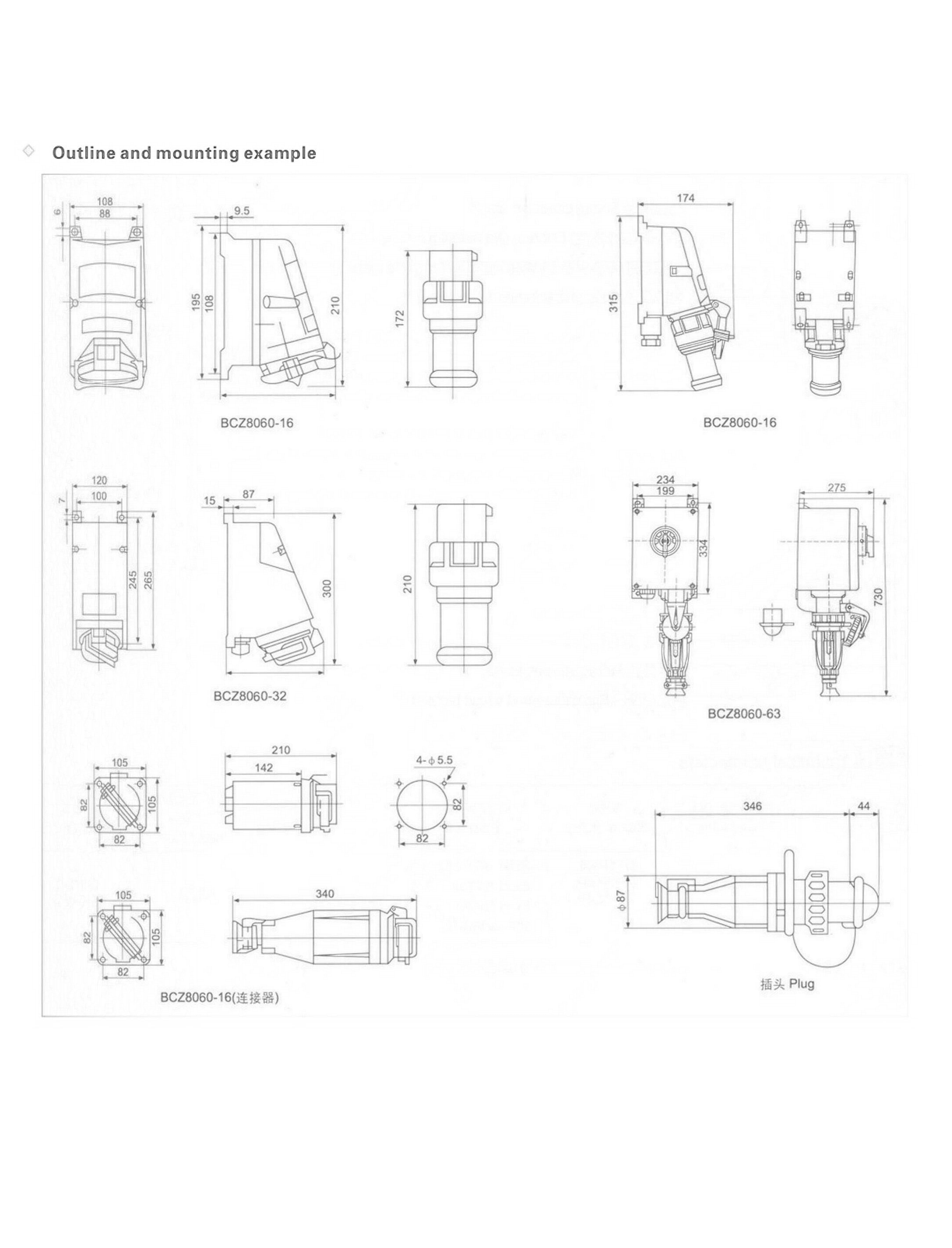 5. The socket is equipped with reliable mechanical interlocking device, that is, the switch can be closed only after the pluą is inserted into the socket, and the plug can be pulled out after the switch is disconnected.